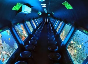 Su altı dünyasını camlarla çevrili denizaltıda konforlu ve güvenli şekilde keşfederek, mercan resiflerini ve deniz yaşamını yakından izleyebilirsiniz.